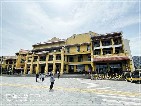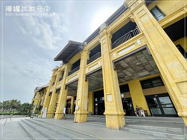碼頭的鵝黃色建築也滿有特色的。